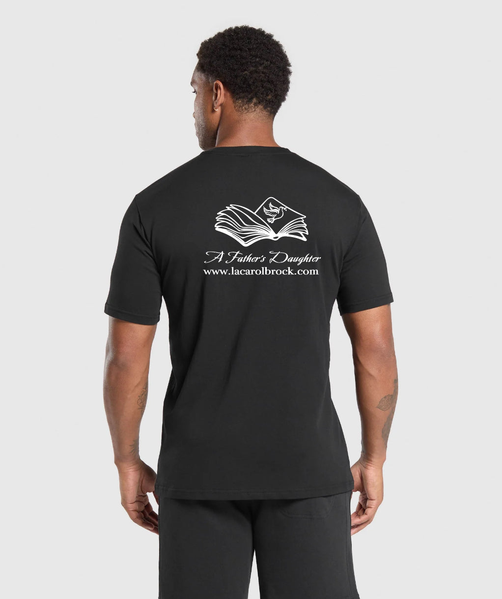 Introducing Batya Tees for men and women - the perfect blend of style and substance. These black cotton t-shirts feature the BATYA logo on the front, and on the back, proudly showcases the title of the published book "A Father's Daughter" along with its website. Show your support for this powerful story while looking effortlessly chic.